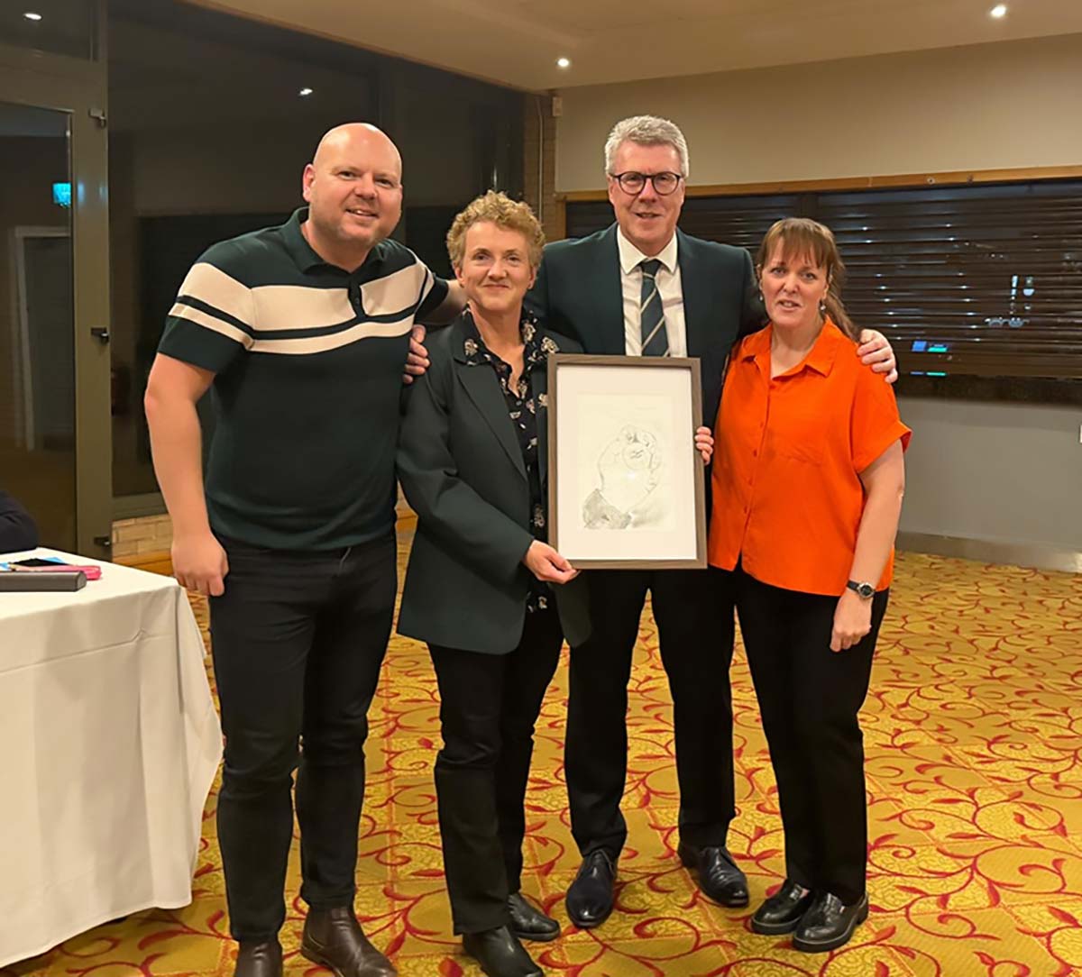 “Attending the presentation for Age UK Cheshire were Liam Birchall and Rachel McMullin and they presented us with a piece of artwork created by one of the people they care for.”